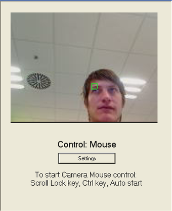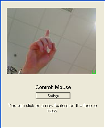 Bij het opstarten opent er een venster waarin je aangeeft welk deel CameraMouse moet volgen; denk hierbij aan je oog of een vingertop. Beweeg je nu dit lichaamsdeel, dan zal de cursor op je beeldscherm deze volgen. Het programma reageert scherp dus elke kleine verandering zie je terug op je monitor.